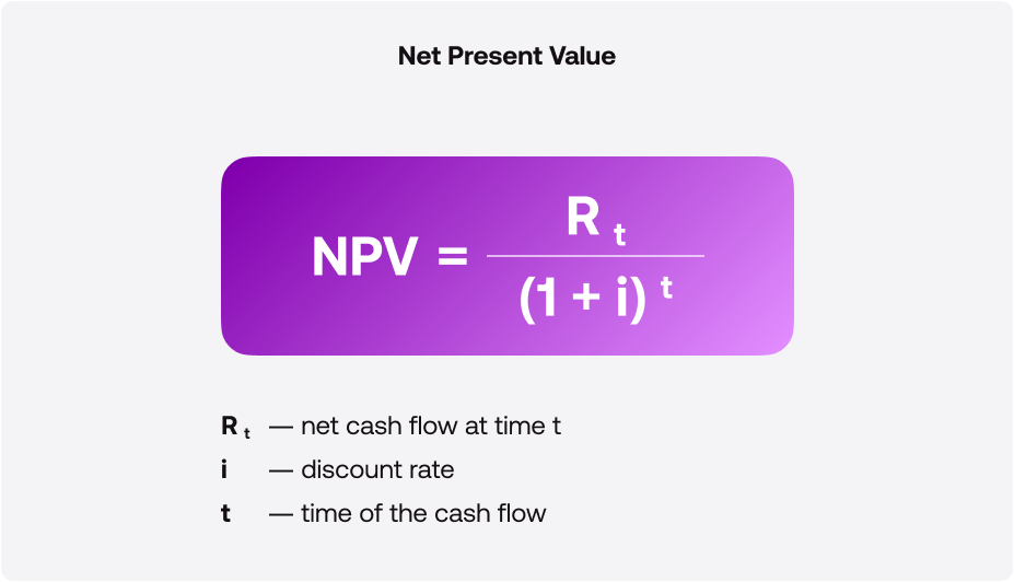 На этом этапе каждый из будущих потоков приводится к стоимости в настоящем моменте с коррекцией на выбранную ставку дисконтирования. Формула ЧПС выглядит так: